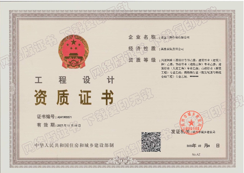 建基工程咨詢有限公司具備建筑工程設計資質證書,可從事資質證書許可范圍內相應的建設工程總承包業(yè)務以及項目管理和相關的技術與管理服務。..